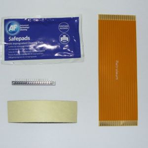 Replacement keyboard ribbon cable kit for Commodore Plus 4This kit provides a solution to broken contacts on the Plus4's original ribbon cable (which tend to come adrift with age and very little disturbance). It contains a new ribbon cable, a right angled FPC connector, a foam pad and IPA cleaning swab. The ribbon can be fitted in two ways, full instructions are provided for both methods:
